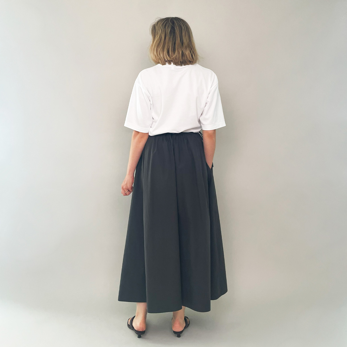 Taljet båndet kan tilpasses i størrelsen. Hvis man ønsker, at nederdelen rynker mindre i taljen end på billedet, så kan man overveje at gå én str. ned. Talje båndet kan udvides til følgende mål:
